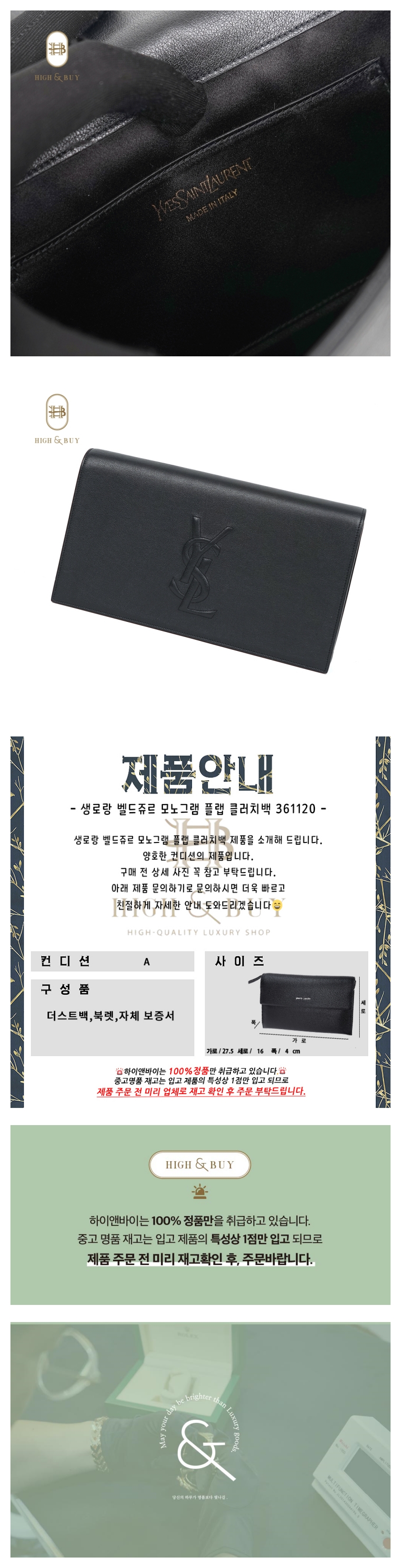 [하이앤바이 대구점] 생로랑 벨드쥬르 모노그램 플랩 클러치백 361120