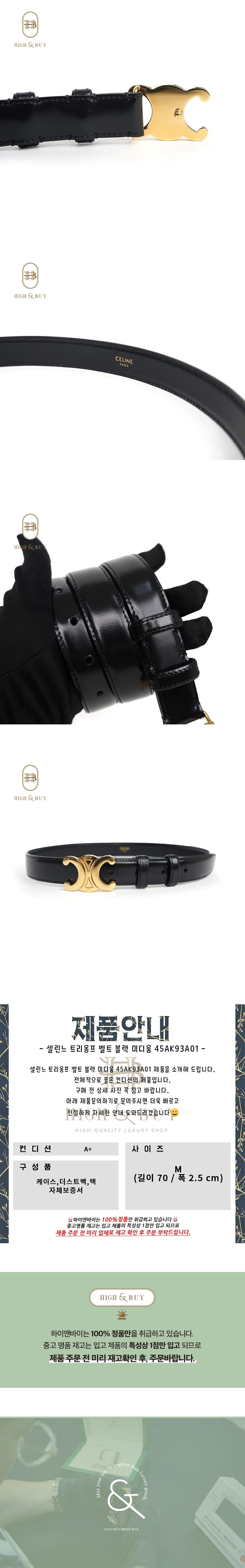 [하이앤바이 대구점] 셀린느 트리옹프 벨트 블랙 미디움 45AK93A01