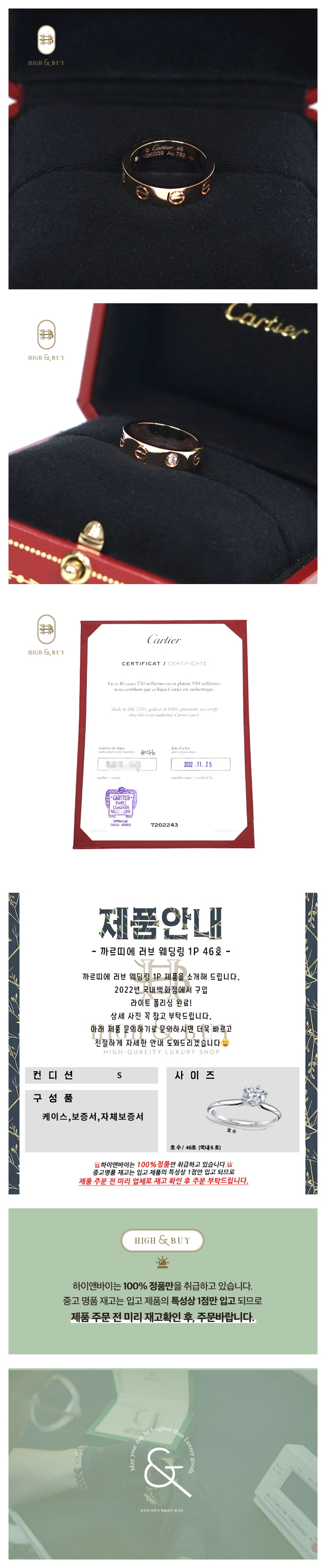 [하이앤바이 대구점] 까르띠에 러브 웨딩밴드 1P 46호