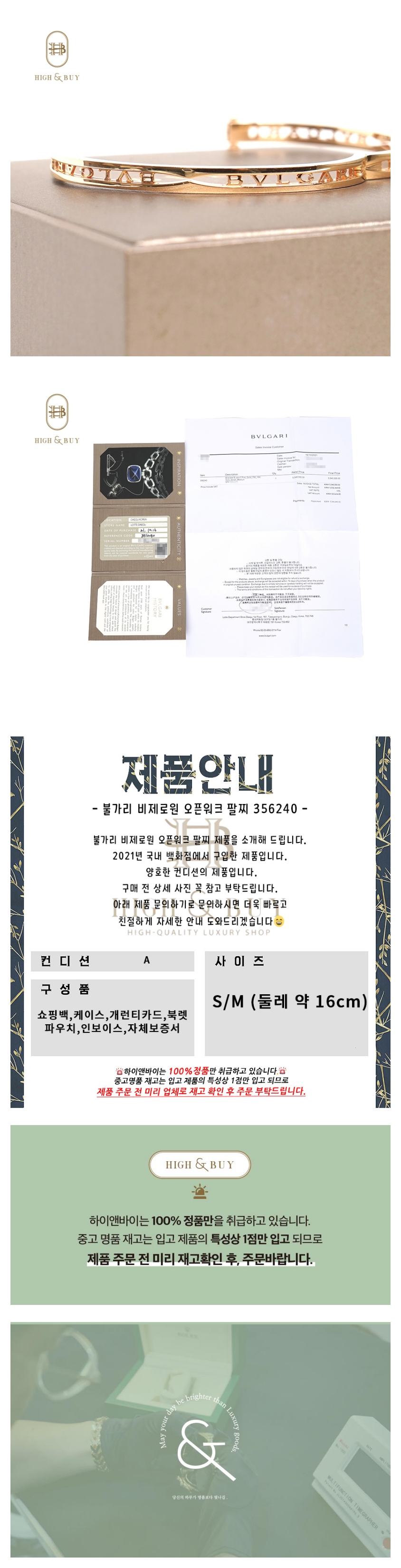 [하이앤바이 대구점] 불가리 비제로원 오픈워크 팔찌 356240