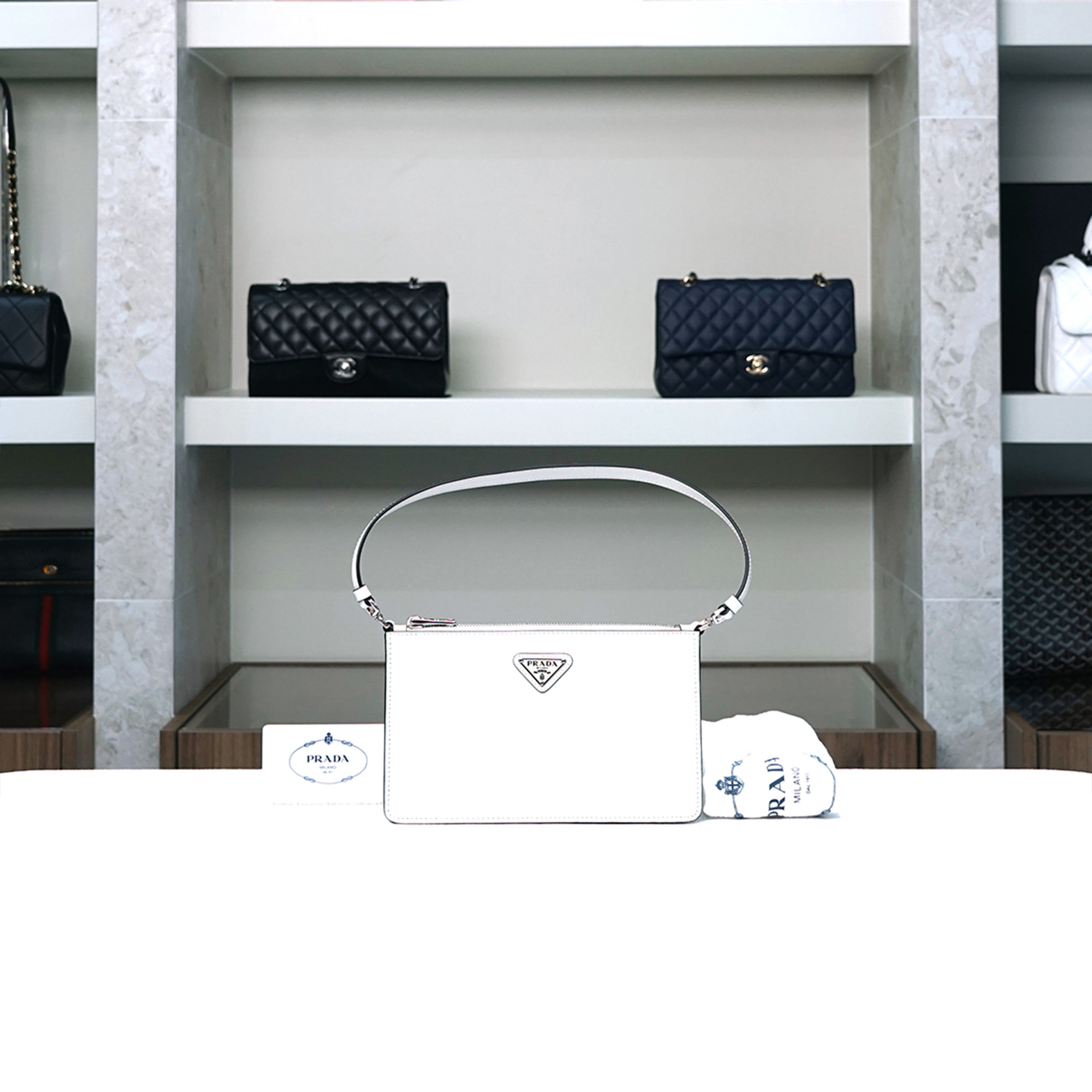 [중고] 프라다 브러시드 미니 화이트 1BC155