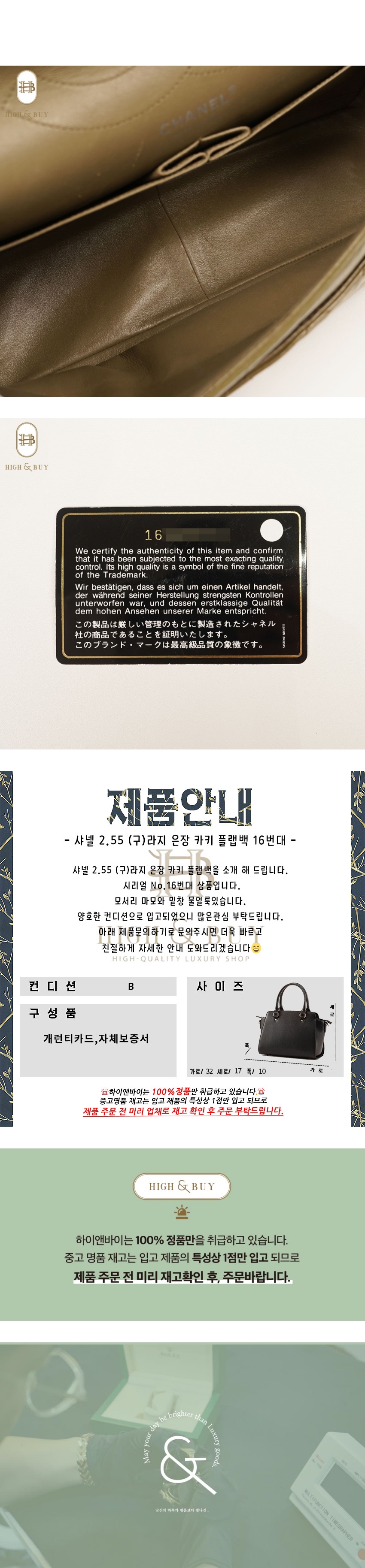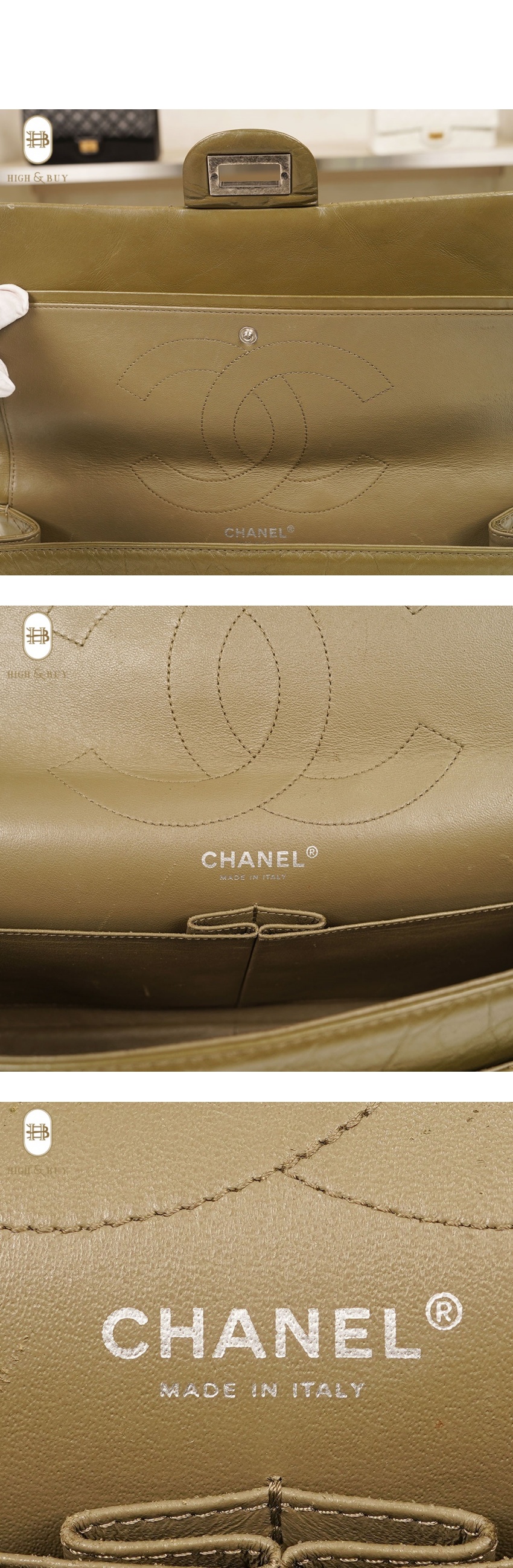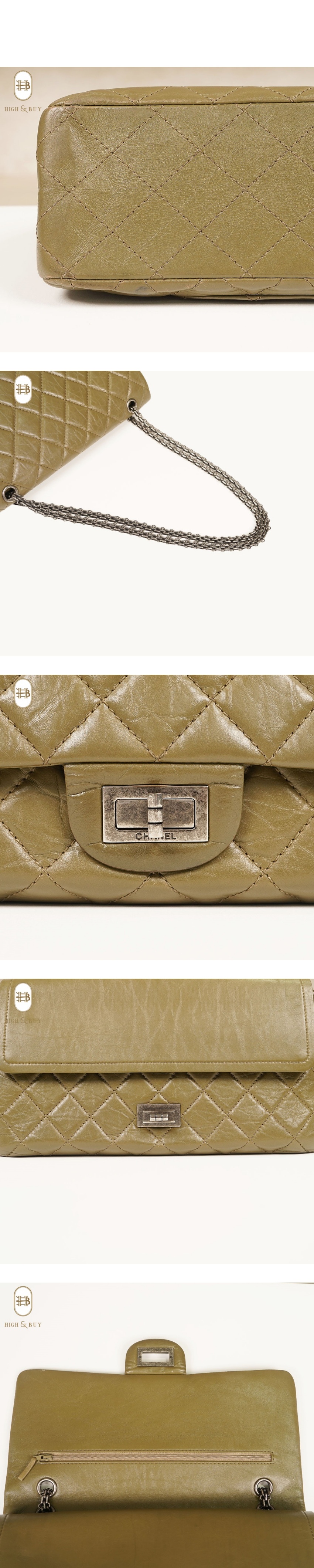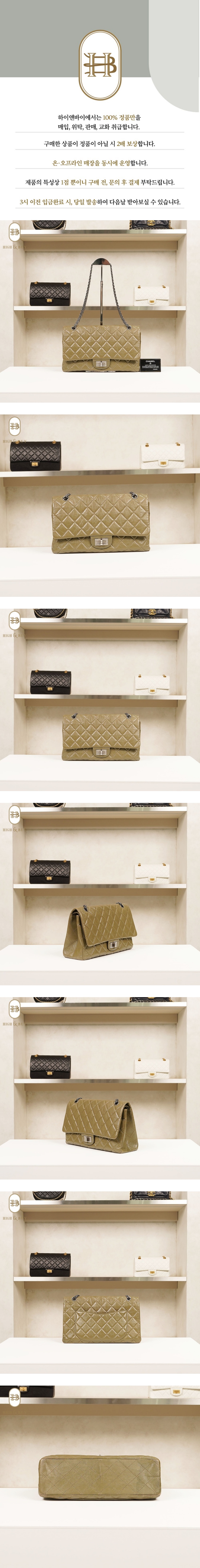 [하이앤바이 김해점] 샤넬 2.55 (구)라지 은장 카키 플랩백 16번대