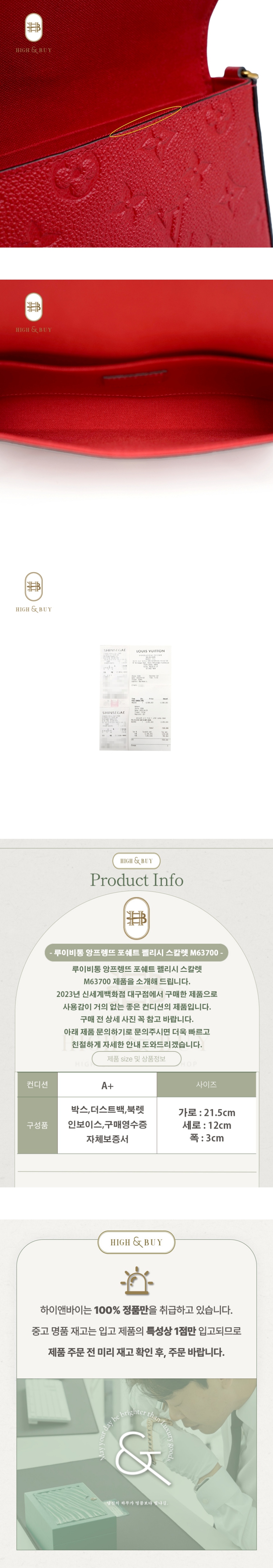 [하이앤바이 대구점] 루이비통 앙프렝뜨 포쉐트 펠리시 스칼렛 M63700