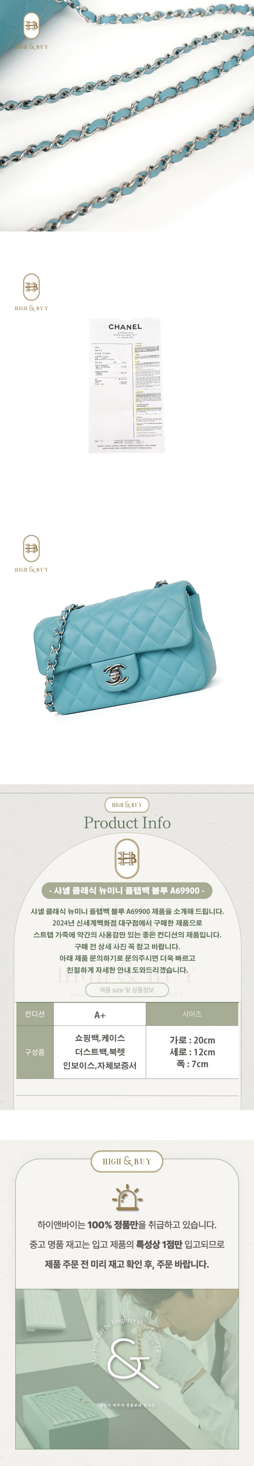 [하이앤바이 대구점] 샤넬 클래식 뉴미니 플랩백 블루 A69900