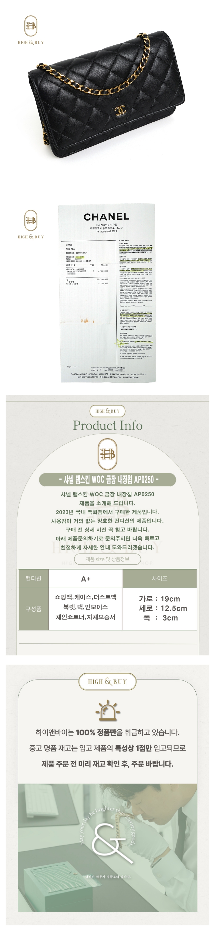 [하이앤바이 대구점] 샤넬 램스킨 WOC 금장 내장칩 AP0250