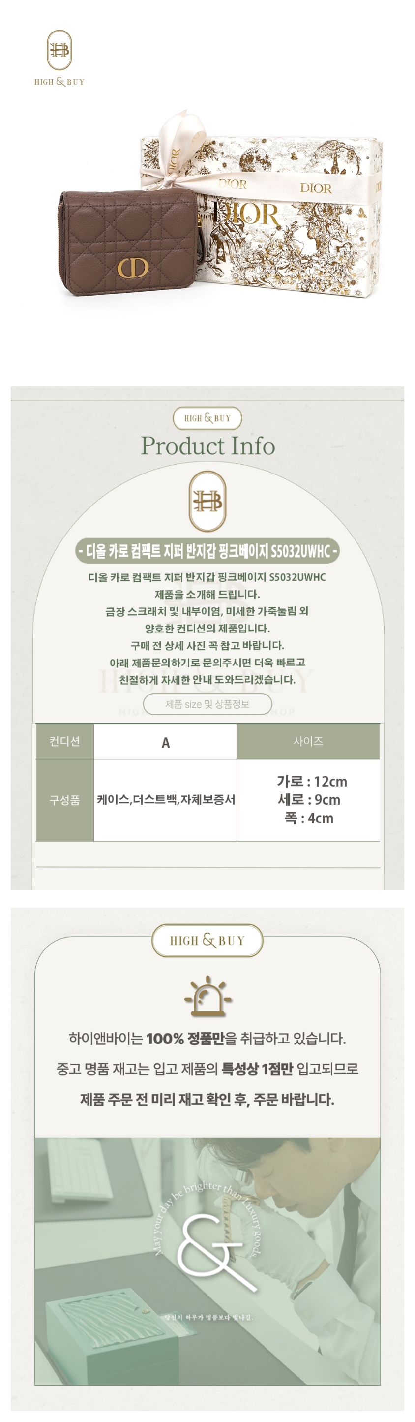 [하이앤바이 수성점] 디올 카로 컴팩트 지퍼 반지갑 핑크베이지 S5032UWHC