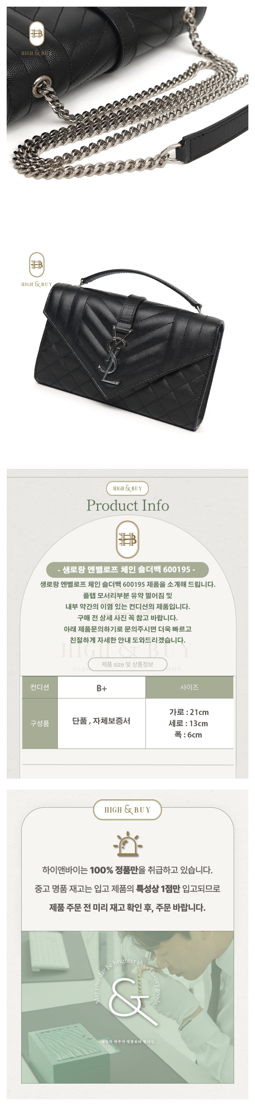 [하이앤바이 대구점] 생로랑 엔벨로프 체인 숄더백 600195