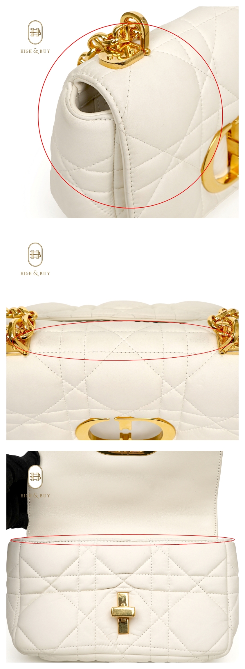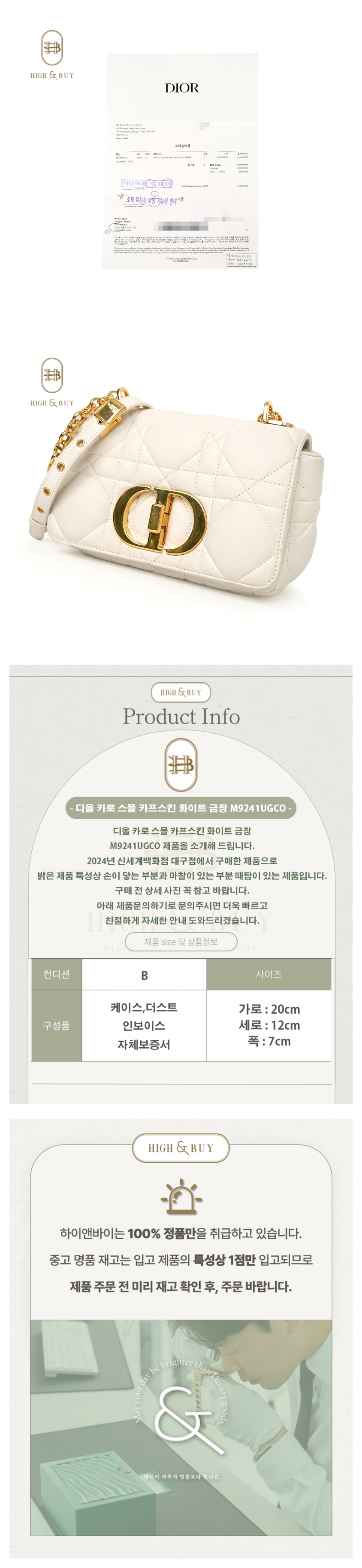 [하이앤바이 대구점] 디올 카로 스몰 카프스킨 화이트 금장 M9241UGCO