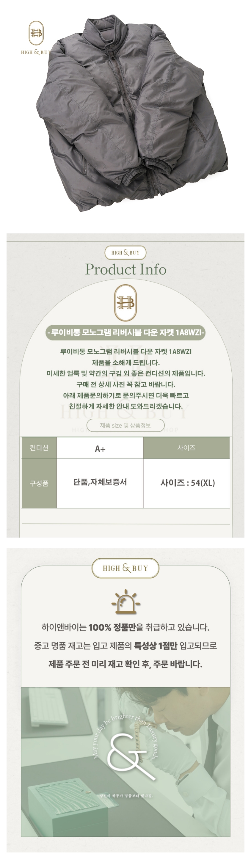 [하이앤바이 대구점] 루이비통 모노그램 리버서블 다운 자켓 1A8WZI