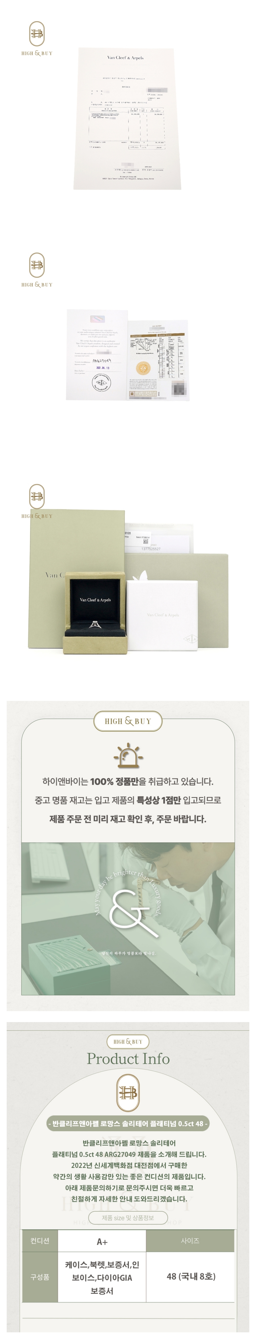 [하이앤바이 대구점] 반클리프앤아펠 로망스 솔리테어 플래티넘 0.5ct 48 ARG27049