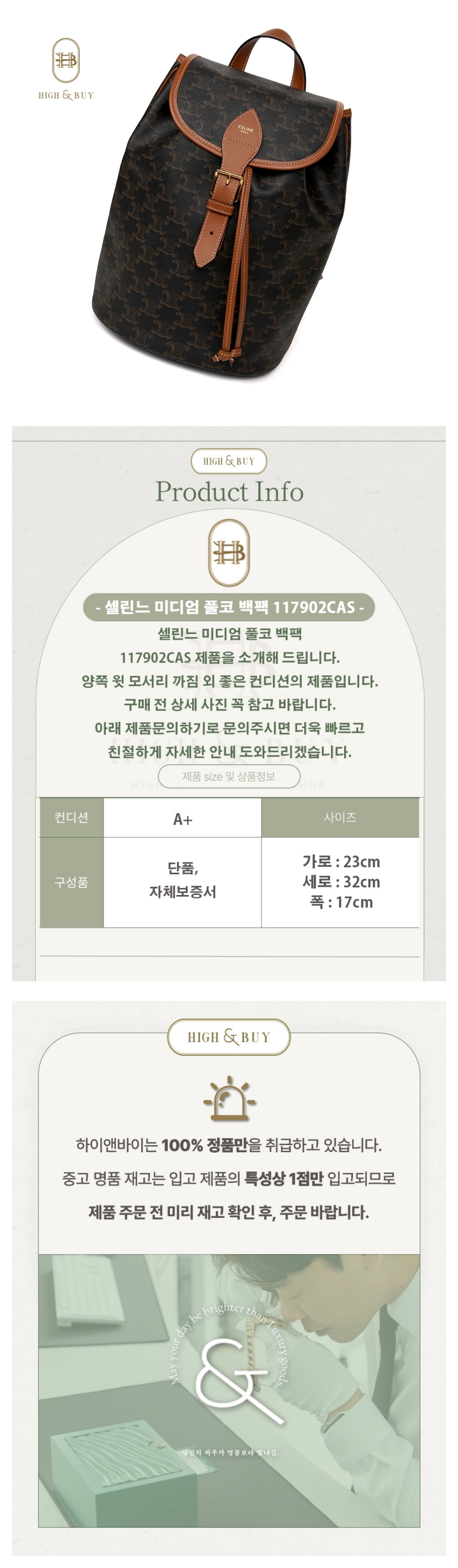 [하이앤바이 대구점] 셀린느 미디엄 풀코 백팩 117902CAS